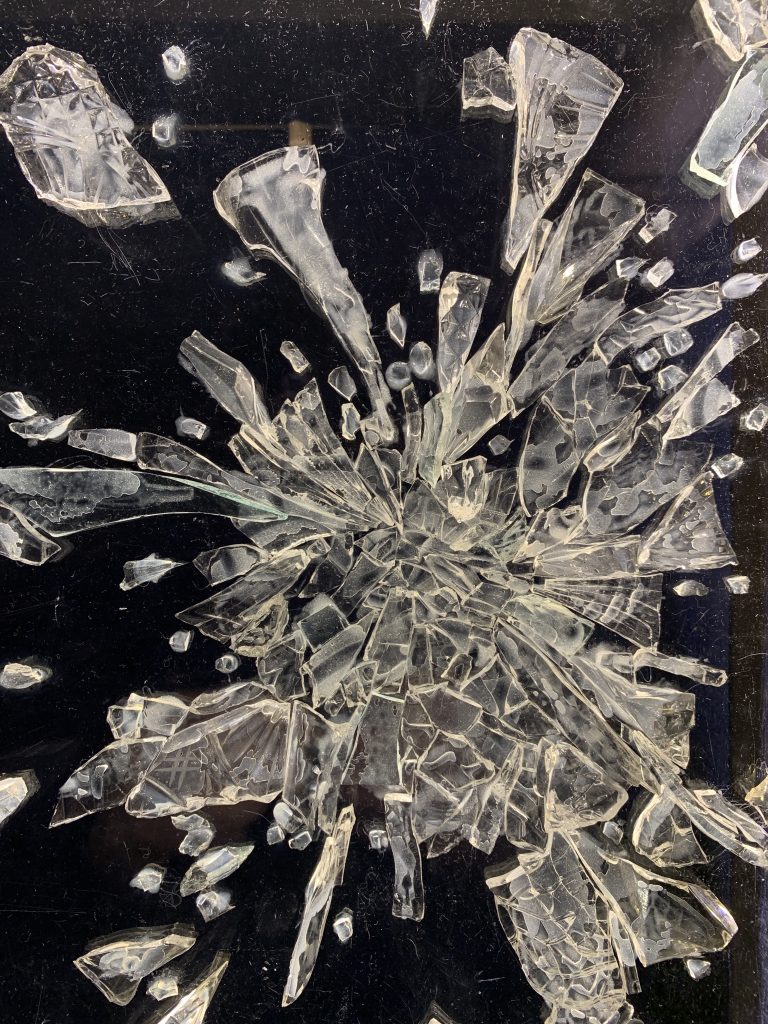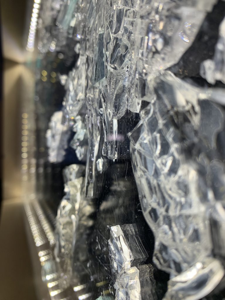 ‘Window Shopping’ features a shattered window crafted from recycled antique glass and second-hand crystal glassware. The broken window serves as a striking symbol of abandoned shopping centres and disused retail spaces, increasingly prevalent in today’s economic climate. Inside, the box is lined with rich blue velvet, an evocative detail inspired by Victorian jewellery shop display cabinets, which hail back to the origins of the high street in the 18th and 19th century.